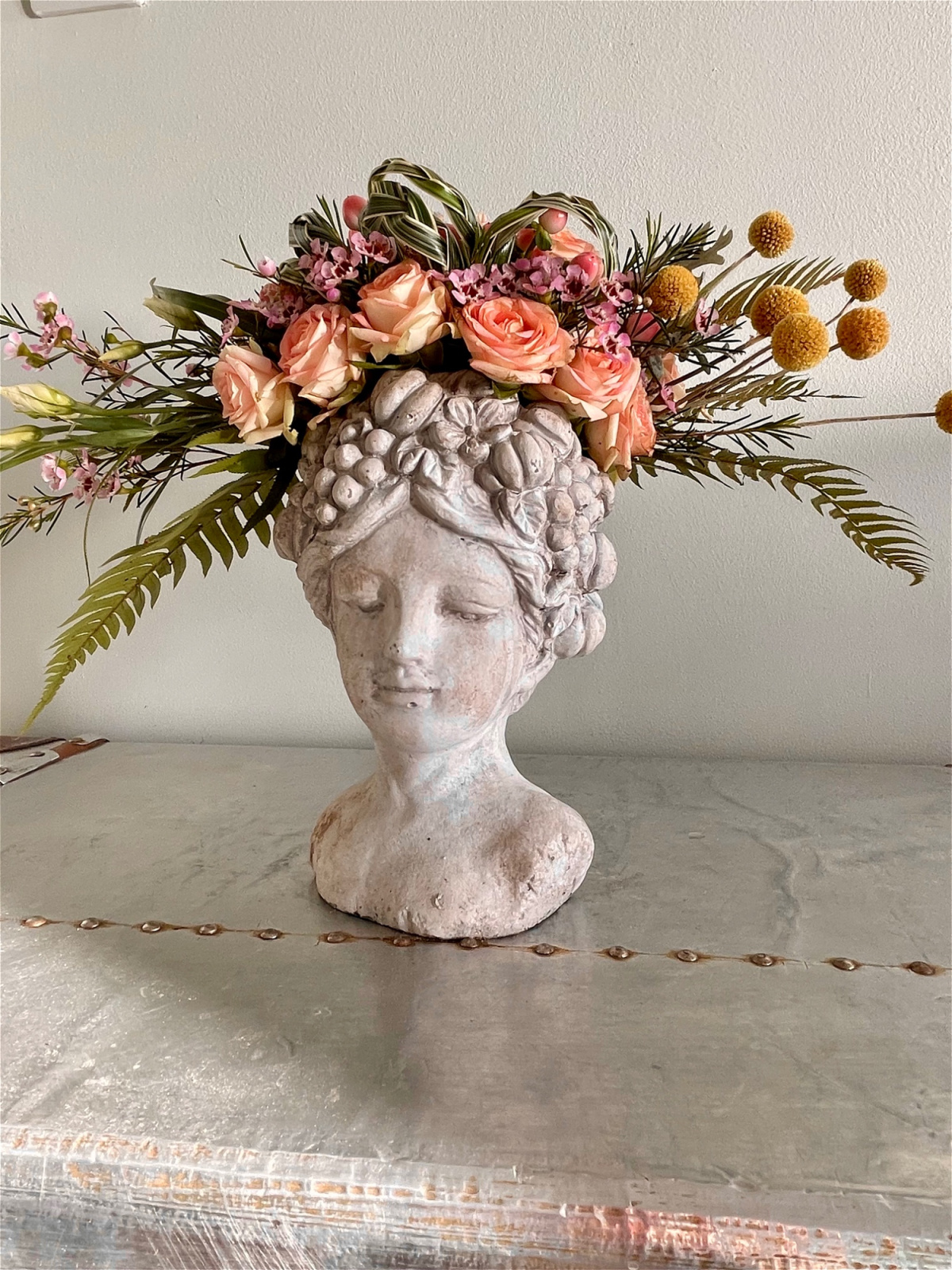 Design: A Beautiful Pot filled with creative styling plus a Flower Crown
